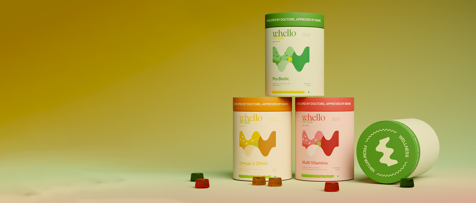 Whello Kids gummies skips the junk—no added sugar, no artificial dyes and no gummy fillers. Just the nutrition kids need, in flavours they love.